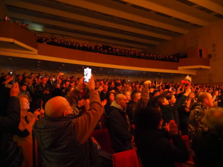 Олег Газманов исполнил все свои главные хиты. Апофеозом концерта стала песня-гимн настоящих мужчин – «Офицеры» и Олег Михайлович посвятил ее всем присутствующим в зале героям и тем, кто сейчас находится на полях сражений. Во время этой песни зал встал и пел вместе с артистом.