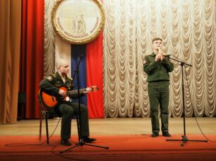 Курсанты 8 факультета подготовили концертную программу, где исполнили много душевных песен. В зале не осталось равнодушных: проникновенные «Кукушка» и «Журавли» исполнили все вместе, со слезами на глазах.
