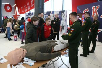В фойе второго этажа «Хоккейного города» гости праздника приняли участие в мастер-классе по оказанию первой медицинской помощи, в котором были задействованы старшекурсники Военно-медицинской академии — отличники учебы под руководством старшего преподавателя кафедры оперативного искусства полковника Алексея Заречнева. Они помогали всем желающим правильно наложить жгут, выполнить внутривенную инъекцию и провести сердечно-легочную реанимацию на манекенах. Большую помощь в организации мастер-класса оказали заместитель главного врача по организации скорой медицинской помощи НИИ скорой помощи им. И.И. Джанелидзе, главный внештатный специалист по первой помощи Министерства здравоохранения РФ в Северо-Западном Федеральном округе Андрей Махновский, заместитель председателя Комитета по предпринимательству в сфере здравоохранения Торгово-промышленной палаты Санкт-Петербурга Марина Дормидонтова, а также руководитель Санкт-Петербургского общественного движения «Легион»; старший врач оперативного отдела Городской станции скорой медицинской помощи Александр Раевский. Целый стенд мастер-класса был посвящен правилам поступления в академию. На все важные вопросы будущих абитуриентов ответил ответственный секретарь приемной комиссии подполковник медицинской службы Евгений Воеводин. Мероприятие было организовано в рамках профориентационной акции «Есть такая профессия-Родину защищать».
