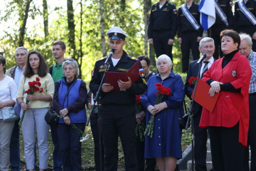 Военно-медицинская академия почтила память погибших на Ладоге курсантов и выпускников военно-морских училищ Ленинграда.