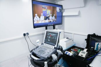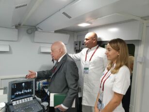 Мобильный телемедицинский комплекс фактически представляет собой мини-лабораторию, в которой любой медицинский специалист может провести обследование пациента. Диагностическая часть комплекса включает в себя УЗИ и рентген-аппараты, также имеется три лабораторных прибора, которые позволяют проводить биохимический, клинический анализ крови и общий анализ мочи. Остальные медицинские приборы предназначены для функциональной и инструментальной диагностики – электрокардиограф, пульсоксиметр, тонометр, спирометр и отоскоп.