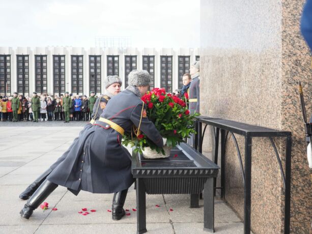 23 февраля 2020 года в Санкт-Петербурге на площади Победы прошло торжественное мероприятие, посвященное Дню защитника Отечества, в котором приняли участие члены городского правительства, главы районных администраций, депутаты ЗакСа, руководители Западного военного округа, общественные и ветеранские организации, руководители и курсанты высших военных учебных заведений, а также жители Петербурга. Цветы к Монументу героическим защитникам Ленинграда от Военно-медицинской академии им. С.М. Кирова возложил начальник академии генерал-майор медицинской службы Александр Яковлевич Фисун. В торжественном строю курсантов военных вузов у мемориала стояли будущие военные врачи-курсанты факультета подготовки врачей для Воздушно-космических сил.