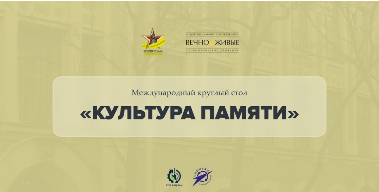 25 января 2022 года в онлайн-формате прошел международный круглый стол «Культура памяти», организованный Межрегиональной общественной организацией патриотической деятельности «Бессмертный Полк Победы» в Санкт-Петербурге.