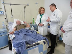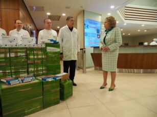 Председатель Совета Федерации передала в дар современные перевязочные средства и пообщалась с пациентами клиники военно-полевой хирургии.