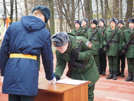 На верность Отечеству присягнули около 20 человек. Этому предшествовал учебный курс, во время которого призывники изучали воинский Устав, занимались строевой и боевой подготовкой.