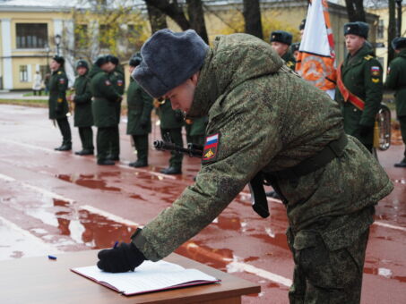 На верность Отечеству присягнули 16 человек. Этому предшествовал учебный курс, во время которого призывники изучали воинский Устав, занимались строевой и боевой подготовкой.