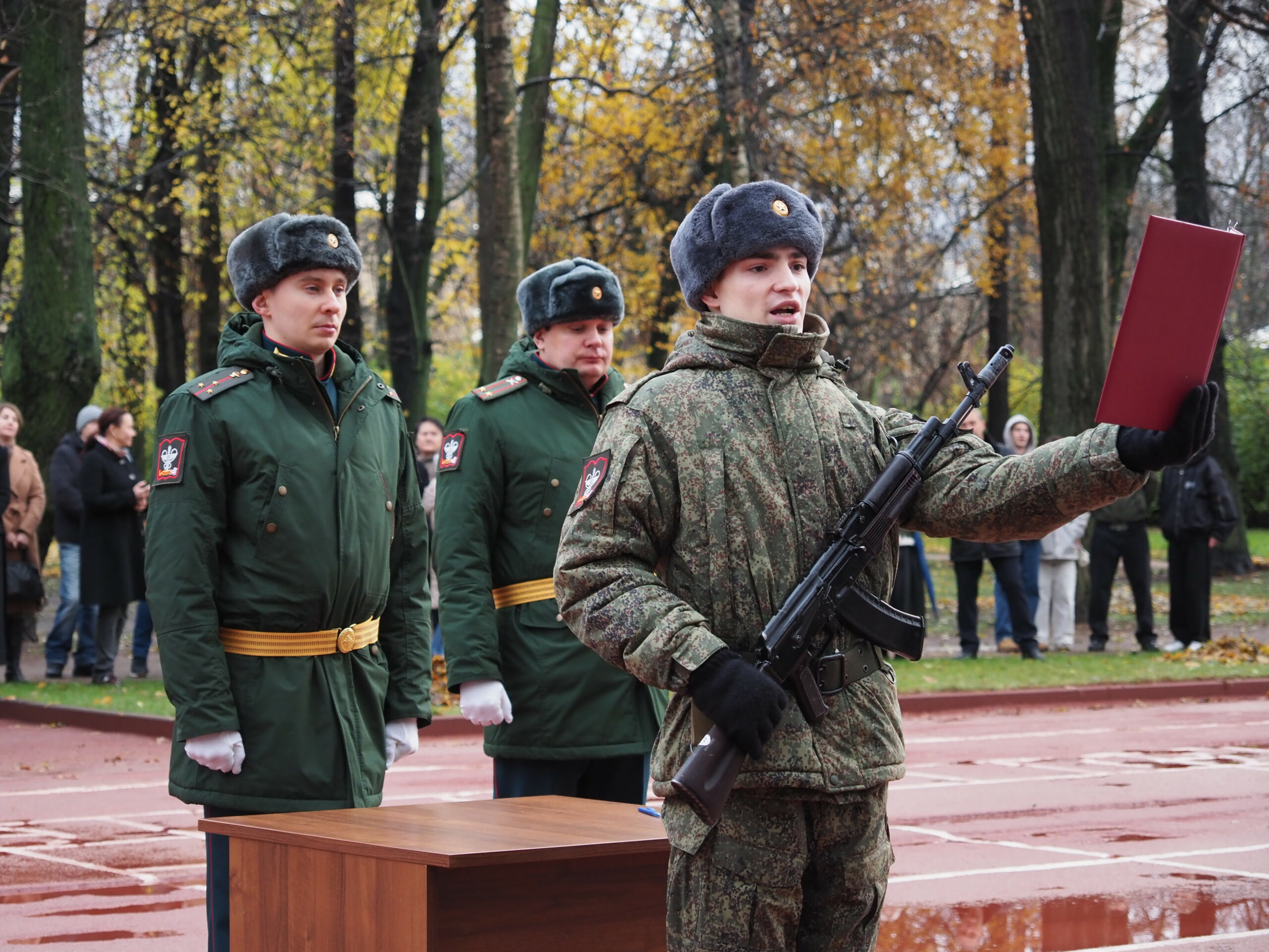 На верность Отечеству присягнули 16 человек. Этому предшествовал учебный курс, во время которого призывники изучали воинский Устав, занимались строевой и боевой подготовкой.