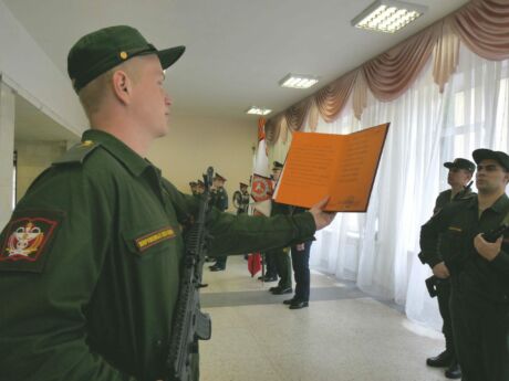 Военная присяга – торжественное обещание, клятва, которую дает гражданин, вступающий в ряды Вооружённых Сил. Присягая на верность Отечеству, молодые люди берут на себя высокие обязательства: “свято соблюдать Конституцию Российской Федерации, строго выполнять требования воинских уставов, приказы командиров и начальников. Солдаты клянутся достойно исполнять воинский долг, мужественно защищать свободу, независимость и конституционный строй России, народ и Отечество”.