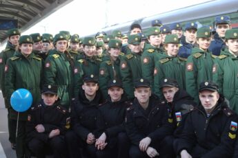 Курсанты академии посетили торжественную встречу эшелона и осмотрели тематические экспозиции вагонов поезда.