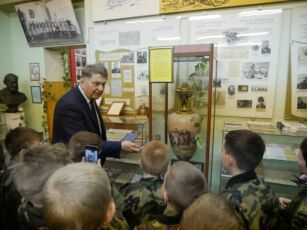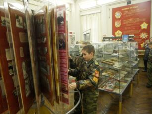 Воспитанники 4-го класса кадетской школы из Павловска с интересом осмотрели экспонаты историко-мемориального зала, экскурсию по которому для них провел директор музея академии Константин Алексеевич Палий. В легкой занимательной форме он рассказал об истории академии и о профессии военного врача, а также представил юным гостям самые ценные экспонаты — кресло химика и композитора Александра Порфирьевича Бородина, вазу Наполеона, подаренную императором Александром I своему лейб-медику, президенту медико-хирургической академии баронету Якову Васильевичу Виллие. И, конечно, кадетов воодушевила возможность сфотографироваться с настоящим старинным пистолетом.