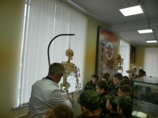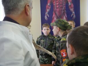 Кроме того, воспитанникам кадетской школы показали анатомический музей кафедры нормальной анатомии. Несмотря на юный возраст, ребята проявили большой интерес к экспонатам и рассказу о строении человеческого тела, а после задавали много вопросов заместителю начальника кафедры нормальной анатомии Геннадию Ивановичу Нечипоруку.
