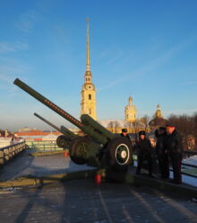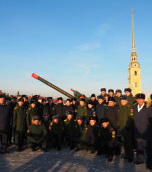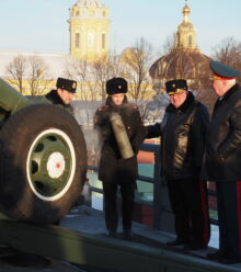 После службы в Петропавловском соборе собравшиеся переместились на Нарышкин бастион. Начальник академии генерал-майор медицинской службы Александр Яковлевич Фисун, профессор кафедры нейрохирургии генерал лейтенант медицинской службы Борис Всеволодович Гайдар и курсант первого курса 4 факультета Илья Соловьев осуществили пушечный выстрел,возвещающий наступление полудня в Санкт-Петербурге. В этот день он еще и возвестил о юбилее Военно-медицинской академии. 18 декабря торжественные мероприятия продолжатся большим Актовым днем в Большом драматическом театре,центральным событием которого станет актовая речь, которую в этом году произнесет заместитель начальника академии по учебной и научной работе генерал-майор медицинской службы Богдан Николаевич Котив.