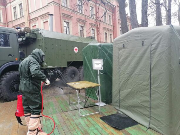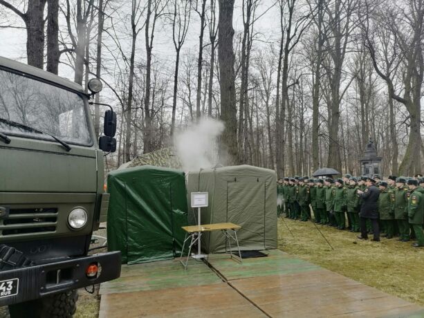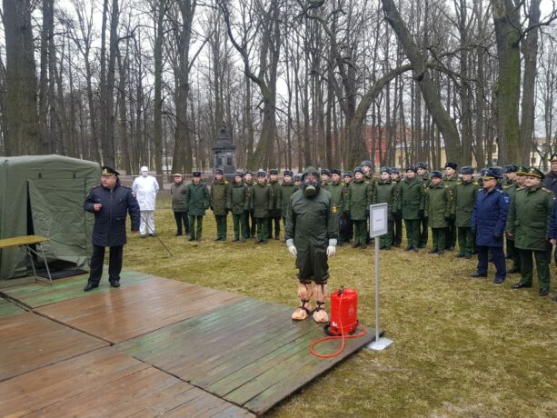 13 апреля 2020 г. с руководителями кафедр академии и курсантами медико-профилактического профиля было проведено инструкторско-методическое занятие: «Проведение дезинфекции вещевого имущества на базе дезинфекционно-душевого комплекса ДДК-01».
