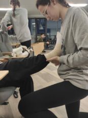 Мероприятие проходило в учебном зале училища. В занятии принимали участие курсанты 2 курса 4 факультета. В качестве опытного инструктора занятие проводил участник СВО прапорщик Баранецкий З. А. а также начинающие инструктора – ефрейтор Рахматулин М.Р. и рядовой Вайс И.А. Целью занятия была поставлена отработка навыков по десмургии, то есть техники наложения повязок и шин. Воспитанницы познакомились как с теоретической частью этого раздела медицины, так и с практической, тренируясь друг на друге для получения навыков в наложении фиксирующих повязок. Также в рамках занятия были отработаны ситуационные задачи с различными условиями и вводными. Воспитанницы пансиона Министерства обороны закрепили пройденный материал на практике, тренируясь друг на друге, что позволило преподавателям оценить уровень усвоения материала и вносить свои коррективы при дальнейшем проведении подобных занятий.